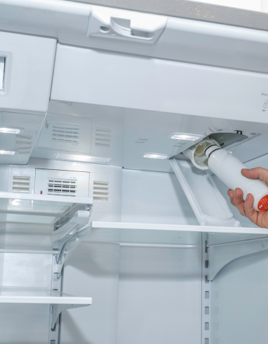 Los filtros de agua de los Refrigeradores LG proporcionan agua potable de alta calidad mediante la eliminación de contaminantes como pesticidas, productos químicos y detergentes.